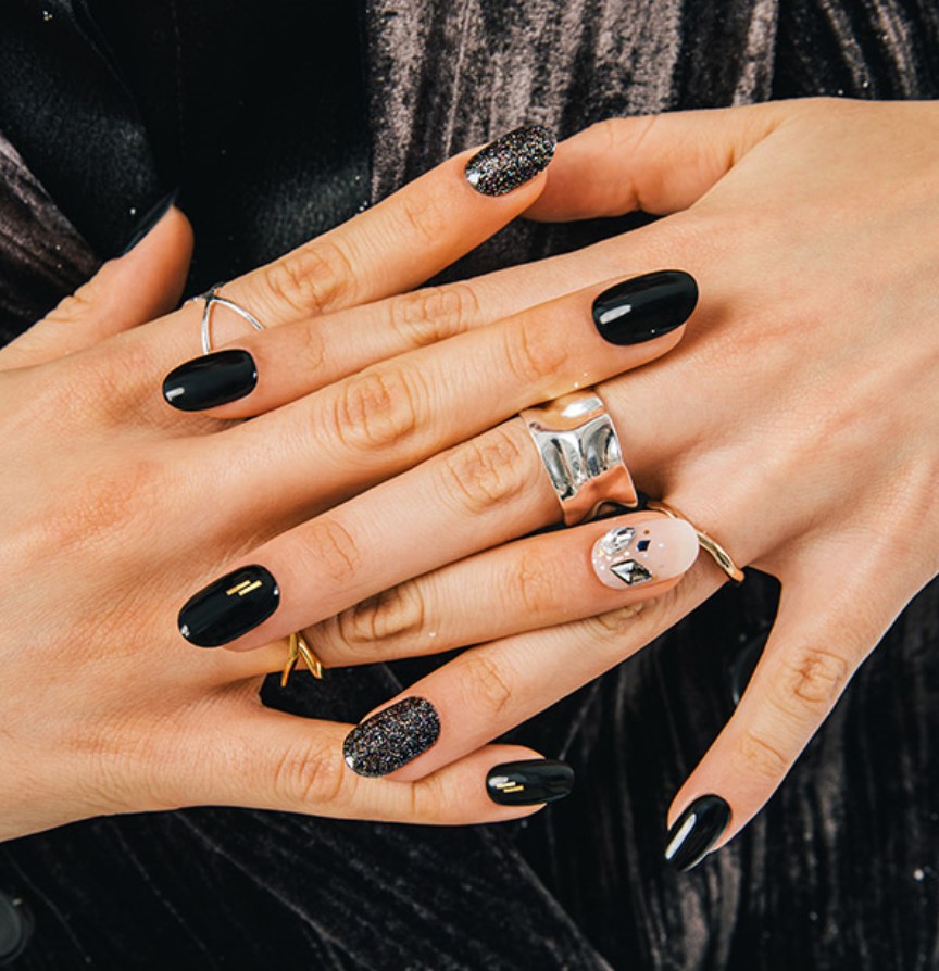 3D Crystal Gold Glitter Sticker Black Swan Gel Nail Strips